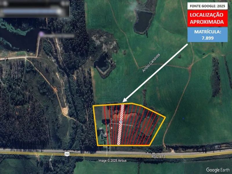 Descrição: Dê seu lance em Leilão Judicial de Terreno. Terreno c/ 4.431,15m², lote 06 Estrada Federal BR 293, Km 136,5 (sem benfeitorias), Candiota/RS. (Proc. 5001480-64.2015.4.04.7109/RS)   (P/ LOTES 14 AO 22: O IMÓVEL PODE SER PARCELADO COM ENTRADA DE 25% E O RESTANTE EM ATÉ 59X, LIMITADO À DÍVIDA DE R$ 1.411.363,02. CASO A ARREMATAÇÃO SUPERE À  DÍVIDA, O SALDO REMANESCENTE DEVERÁ SER PAGO À VISTA)   Obs.: Os bens penhorados no processo 5001480-64.2015.4.04.7109 são constituídos de diversos lotes do imóvel de matrícula nº 7.899 de Pinheiro Machado/RS.
