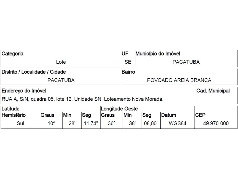 Descrição: Dê seu lance em Leilão de Terreno. Imóvel Situado em Loteamento Com Infraestrutura Deficiente. as Redes de Água e Energia, Embora Instaladas, Não Estão Interligadas às Redes Públicas.