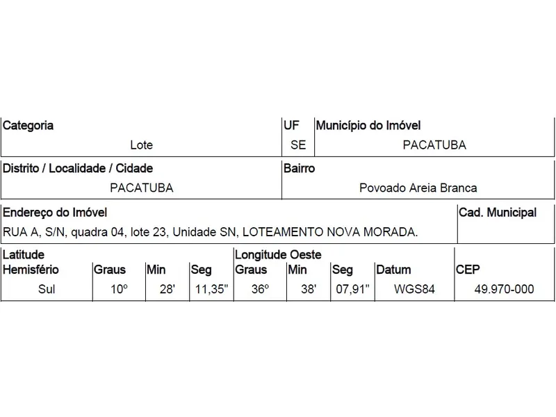 Descrição: Dê seu lance em Leilão de Terreno. Imóvel Situado em Loteamento Com Infraestrutura Deficiente. as Redes de Água e Energia, Embora Instaladas, Não Estão Interligadas às Redes Públicas.